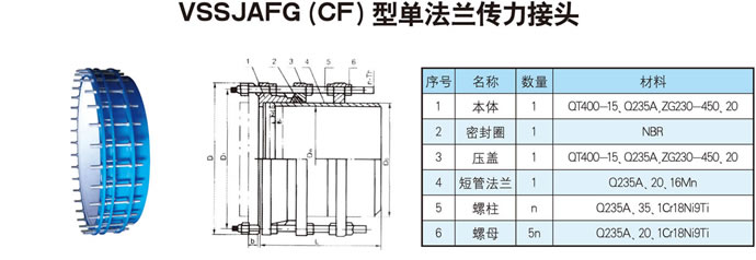 單法蘭傳力接頭:該產(chǎn)品適用于邊與法蘭連接 邊與管道焊接。安裝時調(diào)節(jié)產(chǎn)品兩端與管道或法蘭的安裝長度。安裝和焊接完畢后.對角依次均勻擰緊壓蓋螺栓.合其成為一個.并有定的位移量.方便安裝維修時.根據(jù)現(xiàn)場尺寸進(jìn)行調(diào)整。在工作時可以把軸向推力傳遞至整個管道。